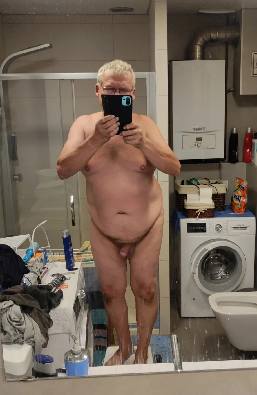 Grubas pokazuje małego w lustrze